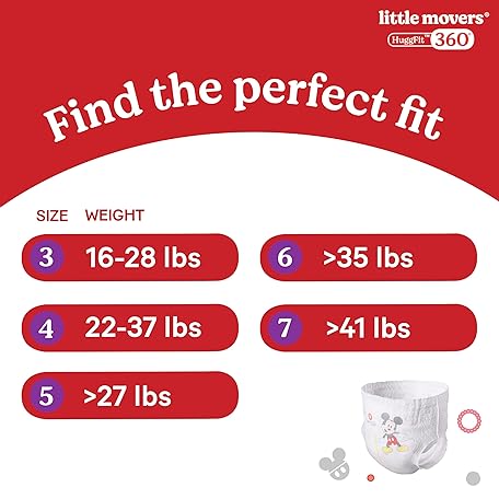 Huggies Size 6 Baby Diapers, Little Movers HuggFit 360° Baby Diapers with 360° Waistband, Size 6 (35+ lbs), 104 Count (2 Packs of 52), Packaging May Vary