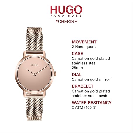Thương hiệu HUGO là cái tên nổi tiếng được rất nhiều khách hàng trên thế giới chọn lựa. Với kiểu dáng đẹp mắt, sang trọng, sản phẩm HUGO #Cherish Women's Quartz Stainless Steel and Mesh Bracelet Casual Watch, Color: Carnation (Model: 1540085) là sự lựa chọn hoàn hảo nếu bạn đang tìm mua một món cho riêng mình.