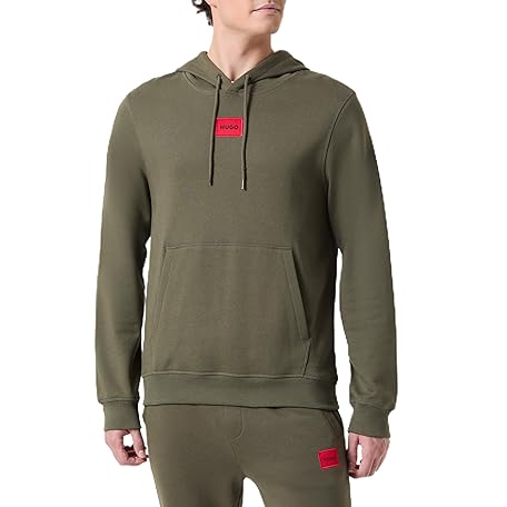 HUGO Men's Regular Fit Square Logo Jersey Hooded Sweatshirt