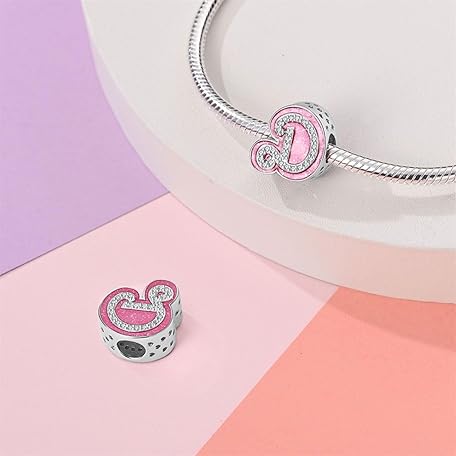 HUIPOJUE Letter Charms for Pandora Bracelets,Pink Charms for Women,A-Z Initial Bead Pendant for Necklace,Christmas Jewelry Gifts
