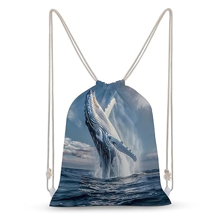 Humpback Sea Whale Ocean Animal Drawstring Backpack Gym Bag Pull String Sport Bag for Women And Men 30x40cm