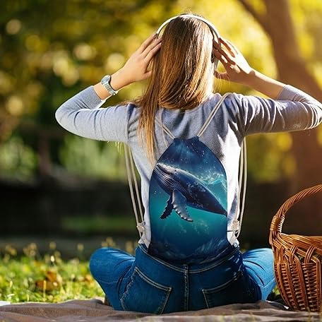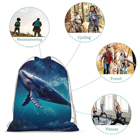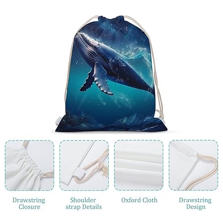 • Humpback Whale Drawstring Backpack Cute String Bag Canvas Daypack Travel Sackpack 30x40cm