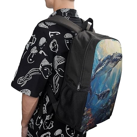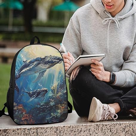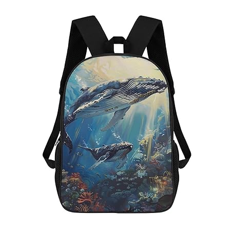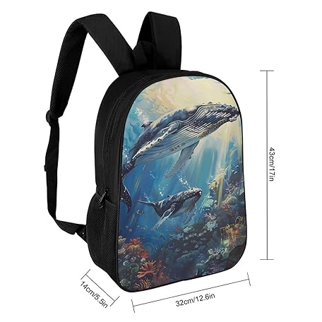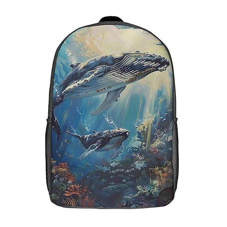 Humpback Whale in The Ocean Classic 17 Inch Backpack for Men Women Casual Basic Bag with Side Pockets for Travel Business