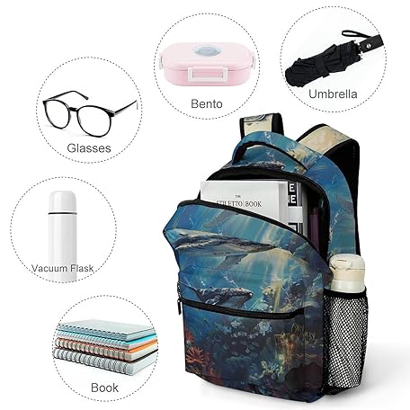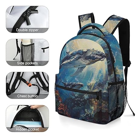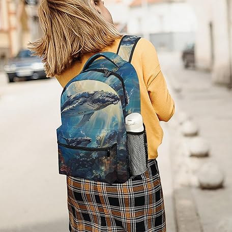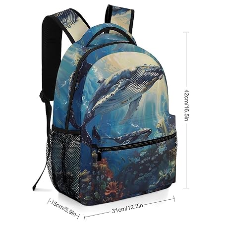 Humpback Whale in The Ocean Cute Backpack Casual Funny Printing Basic Shoulder Bag for Men Women Travel Picnic