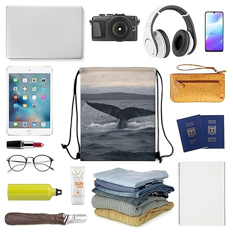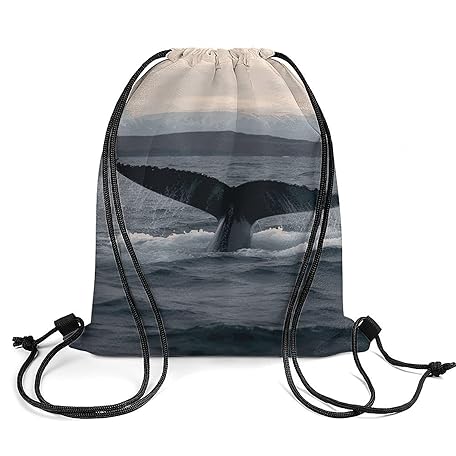Humpback Whale Tail OceanDrawstring Backpack Waterproof Lightweight Gym Bag Sports Cinch Sackpack for Gym,Travel,Swimming,Beach