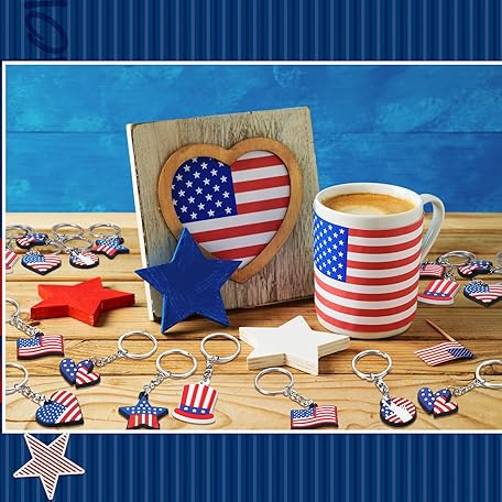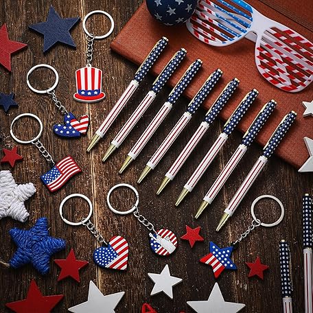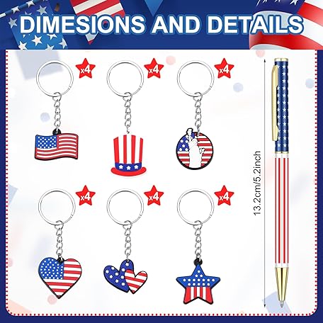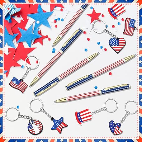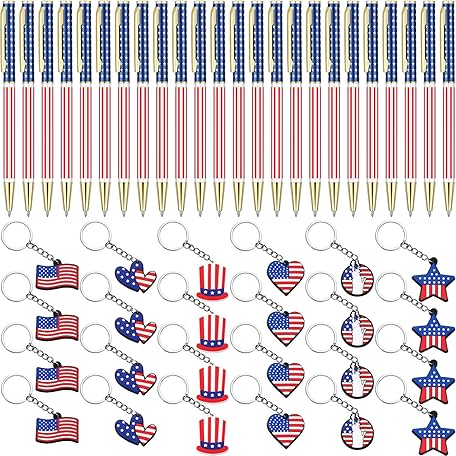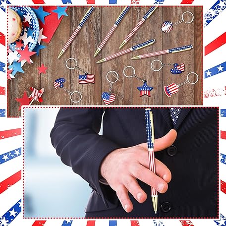 Huquary 48 Pcs Independence Day Metal Ballpoint Pens American Flag Keychain Set Gold Retractable Patriotic Pens USA Flag Key Chains Office Patriotic 4th of July Party Favors for Veterans Day