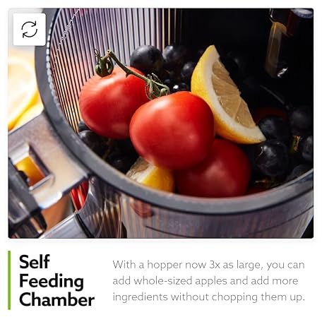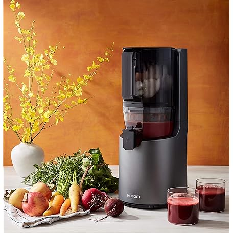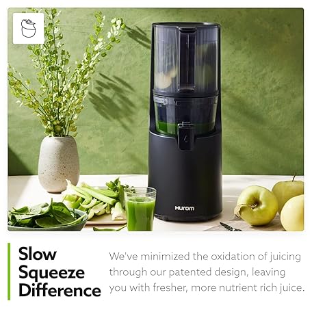 • Hurom H-200 Electronic Slow Juicer Machine (Silver) - Self Feeding w Big Mouth Hopper to Fit Whole Fruits & Vegetables - Healthy Living - Easy Rinse Clean No Scrub BPA Free Easy Assembly