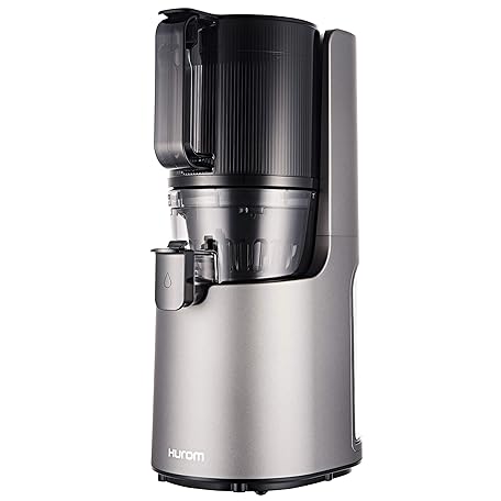 Hurom H-200 Electronic Slow Juicer Machine (Silver) - Self Feeding w Big Mouth Hopper to Fit Whole Fruits & Vegetables - Healthy Living - Easy Rinse Clean No Scrub BPA Free Easy Assembly