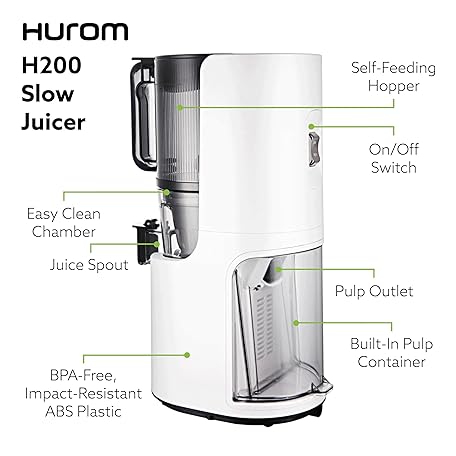 Sản phẩm Hurom H200 Renewed Easy Clean Slow Juicer, White | Hands-Free | Hopper Fits Whole Produce | Quiet Motor | BPA Free | Easy Assembly | Cold Press Masticating Juicer đang được bán với giá ưu đãi là $489.41 tại nước Mỹ.