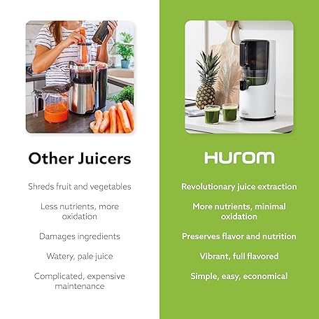 Thương hiệu Hurom là cái tên nổi tiếng được rất nhiều khách hàng trên thế giới chọn lựa. Với kiểu dáng đẹp mắt, sang trọng, sản phẩm Hurom H200 Renewed Easy Clean Slow Juicer, White | Hands-Free | Hopper Fits Whole Produce | Quiet Motor | BPA Free | Easy Assembly | Cold Press Masticating Juicer là sự lựa chọn hoàn hảo nếu bạn đang tìm mua một món cho riêng mình.