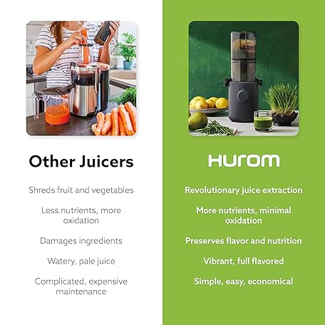 Thương hiệu Hurom là cái tên nổi tiếng được rất nhiều khách hàng trên thế giới chọn lựa. Với kiểu dáng đẹp mắt, sang trọng, sản phẩm Hurom H310 Easy Clean Slow Juicer, White | Compact | Quiet Motor | Hopper Fits Whole Produce | Scrub Free | Easy Assembly | Cold Press Masticating Juicer là sự lựa chọn hoàn hảo nếu bạn đang tìm mua một món cho riêng mình.