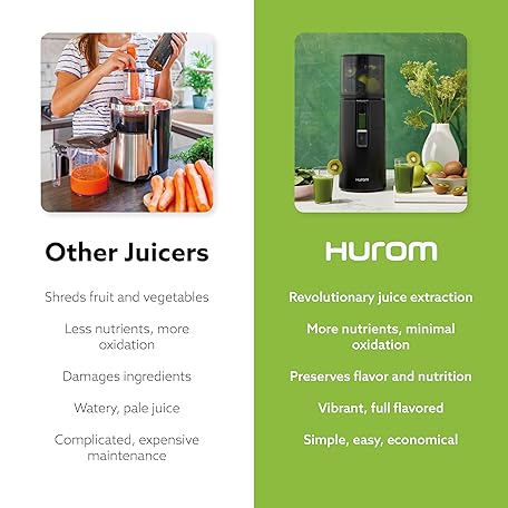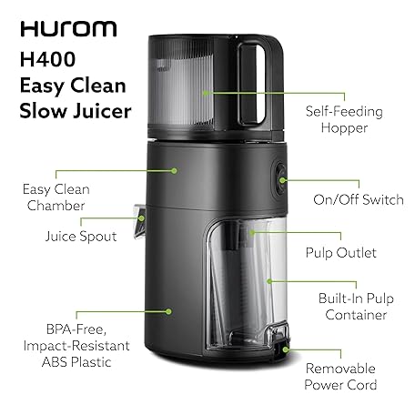 Thông tin sản phẩm Hurom H400 Cold Press Juicer Machine, Award Winning Masticating Slow Juicer, Easy to Clean, Strainer & Hands Free with Self Feeding, Wide Mouth Hopper, Easy Assembly (Matte Black)