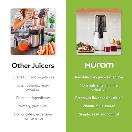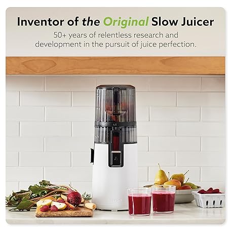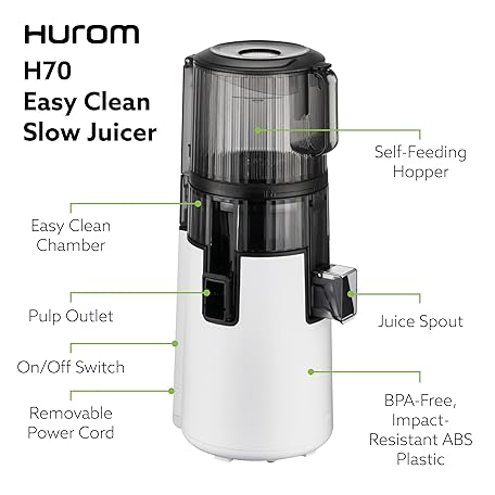 Hurom H70 Cold Press Juicer Machine, Easy to Clean Masticating Slow Juicer, Ideal Balance of Size and Function, Compact, Strainer Free, Self Feeding, Hands Free, with Wide Mouth Hopper (White)