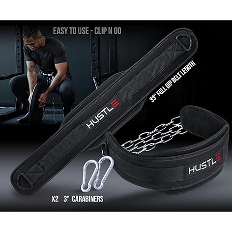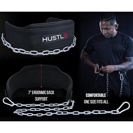 Hustle Athletics Dip Belt For Weightlifting - Weighted Pull Up and Squat With Ergonomic Padding & Heavy Duty Steel Chain - For Pullups, Dips & Squats For Men And Women