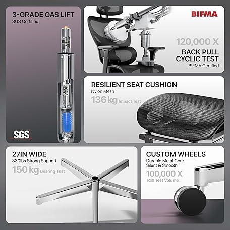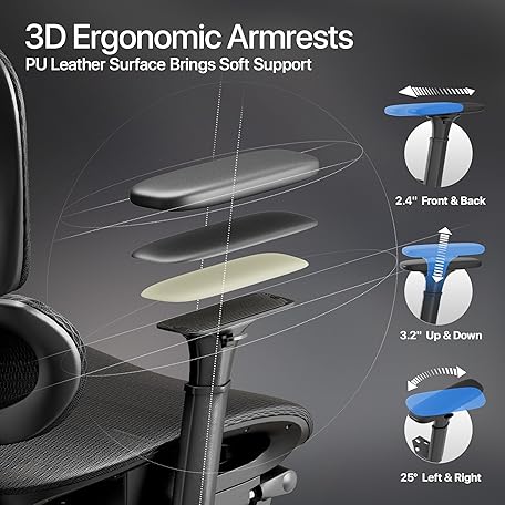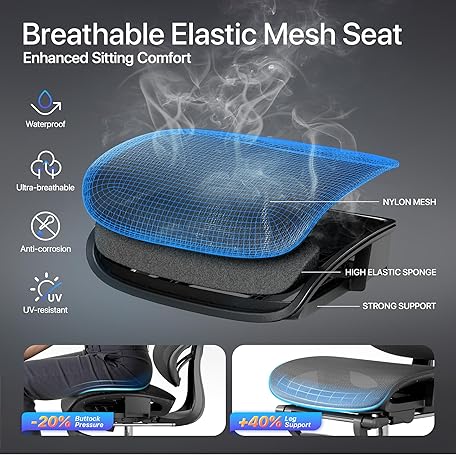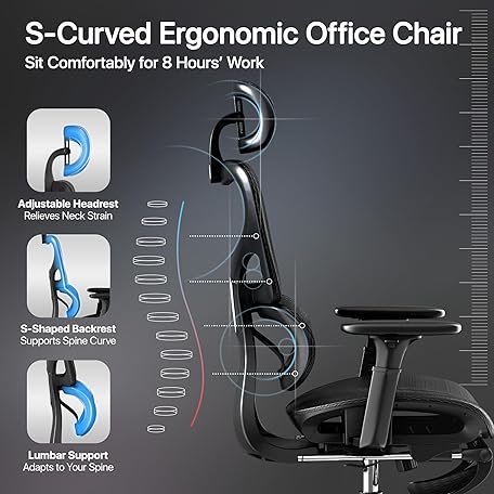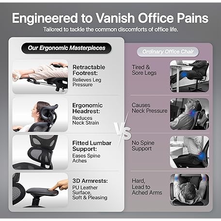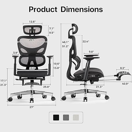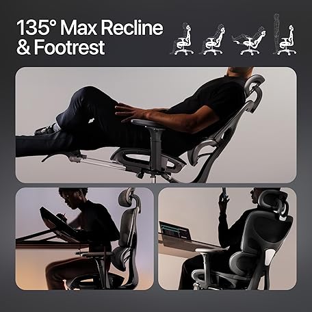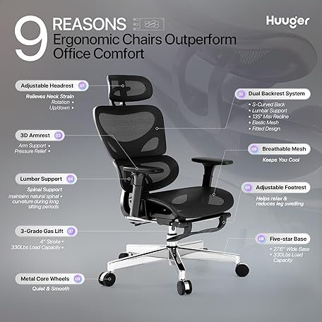Thông tin sản phẩm Huuger Mesh Office Chair with Footrest, Ergonomic Desk Chair with Lumbar Support, Comfortable, Multi-tilt Angle Backrest, Headrest and 3D Armrest, Large Steel Base, Black