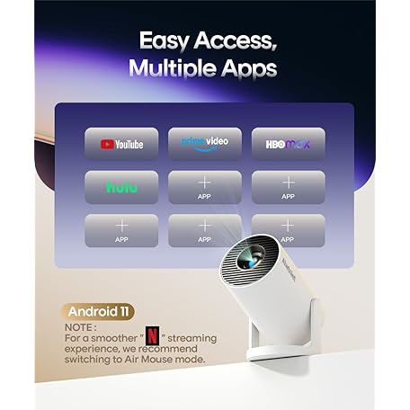 Thông tin sản phẩm HY300PRO Mini Projector with Wifi and Bluetooth, 4K Support 200ANSI Smart Portable Projector, Auto Keystone, 180 Degree Rotation, Android 11 for Outdoor, Bedroom, Movie, game & business