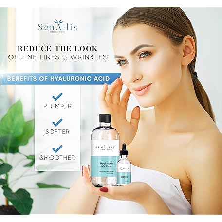 Thương hiệu SenAllis Cosmetics là cái tên nổi tiếng được rất nhiều khách hàng trên thế giới chọn lựa. Với kiểu dáng đẹp mắt, sang trọng, sản phẩm Hyaluronic Acid Serum 8 fl oz And 2 fl oz, Made From Pure Hyaluronic Acid, Anti Aging/Wrinkle, Ultra-Hydrating Moisturizer That Reduces Dry Skin Manufactured In USA là sự lựa chọn hoàn hảo nếu bạn đang tìm mua một món cho riêng mình.