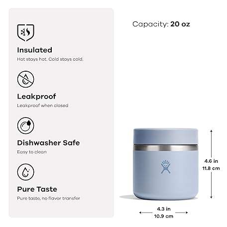 Hydro Flask Food Jar – Insulated Stainless Steel, Snack Travel Container for Hot Food, Lunch, & Soup 20 Oz Surf Blue