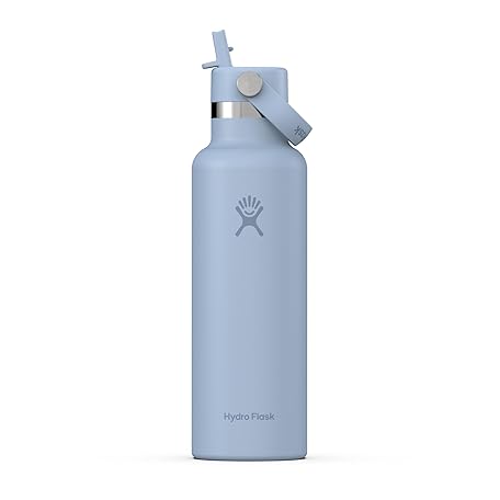 • HYDRO FLASK - Standard Mouth Water Bottle 621 ml (21 oz) - Vacuum Insulated Stainless Steel Water Bottle with Flex Straw Cap - Surf