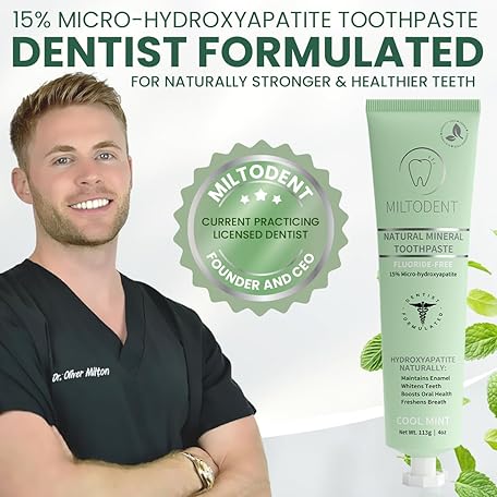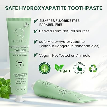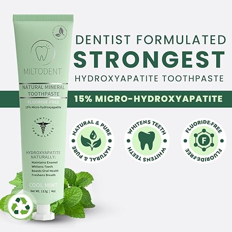 • Hydroxyapatite Toothpaste – MILTODENT 15% Micro-Hydroxyapatite Premium Toothpaste Fluoride-Free, Foam-Free, Natural Mineralizing | Safe Alternative to Nano-Hydroxyapatite | SLS-Free & Paraben-free 4oz