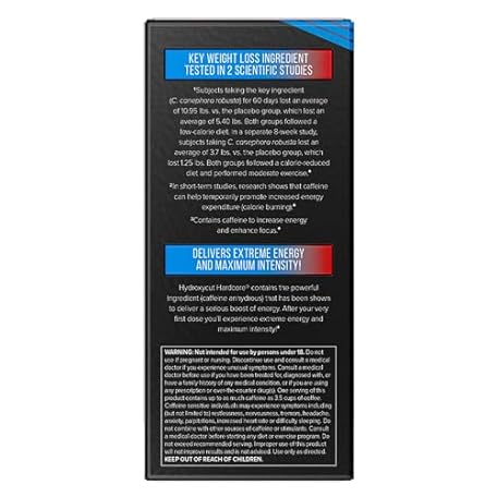 Thông tin sản phẩm Hydroxycut Hardcore - 60 Rapid-Release Capsules - Thermogenic Calorie Burn, Extreme Energy + Focus, Maximum Intensity - for Women & Men