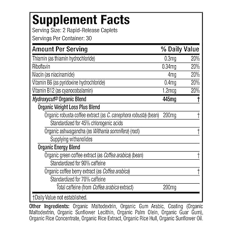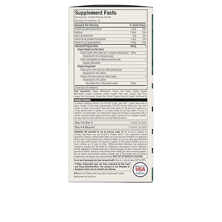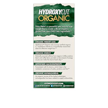 Thông tin sản phẩm Hydroxycut Organic Weight Loss Supplements, Pure Ingredients, Naturally Sourced Energy, Metabolize Carbs Proteins & Fats, Gluten Free, Non GMO, 60 Pills