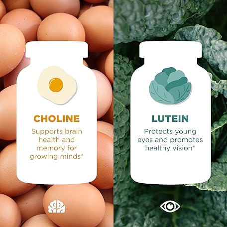 Hyland's Kids Multivitamin + Brain & Eye Health, Sugar Free Natural Mixed Berry Flavored Gummies with Choline, Lutein & Omegas, 60ct Bottle