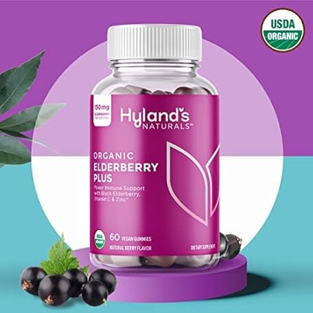Thông tin sản phẩm Hyland's Organic Elderberry Plus Gummies, Organic Black Elderberry with ZINC and Vitamin C, Immune Support Supplement for Adults, 60 Vegan Gummies (30 Days)