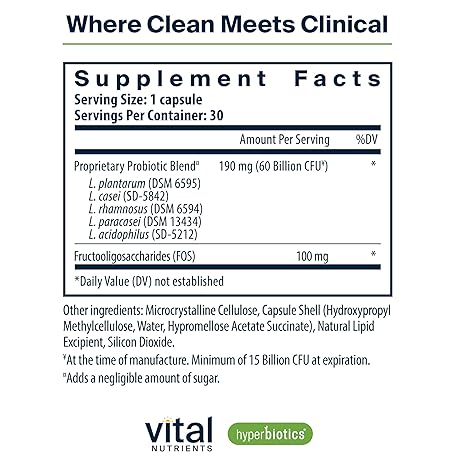 Sản phẩm Hyperbiotics Vital Nutrients Prebiotic and Probiotic for Women and Men | 60 Billion CFU | Pre and Probiotics Supports Digestive Health, Constipation, Diarrhea, Gas & Bloating* | 30 Vegan Capsules đang được bán với giá ưu đãi là $21.7891 tại nước Mỹ.