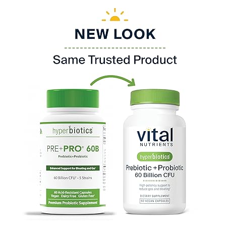 Thông tin sản phẩm Hyperbiotics Vital Nutrients Prebiotic and Probiotic for Women and Men | 60 Billion CFU | Pre and Probiotics Supports Digestive Health, Constipation, Diarrhea, Gas & Bloating | 60 Vegan Capsules
