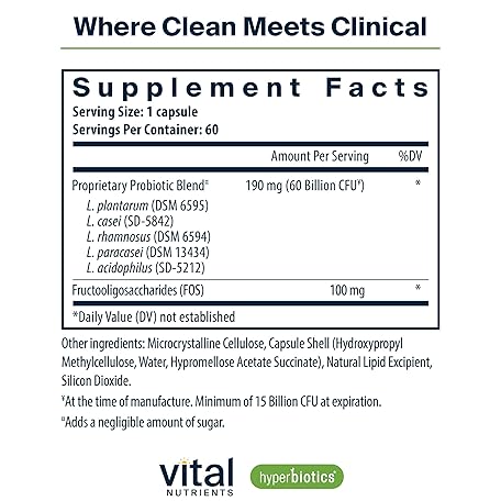 Sản phẩm Hyperbiotics Vital Nutrients Prebiotic and Probiotic for Women and Men | 60 Billion CFU | Pre and Probiotics Supports Digestive Health, Constipation, Diarrhea, Gas & Bloating | 60 Vegan Capsules đang được bán với giá ưu đãi là $34.8691 tại nước Mỹ.