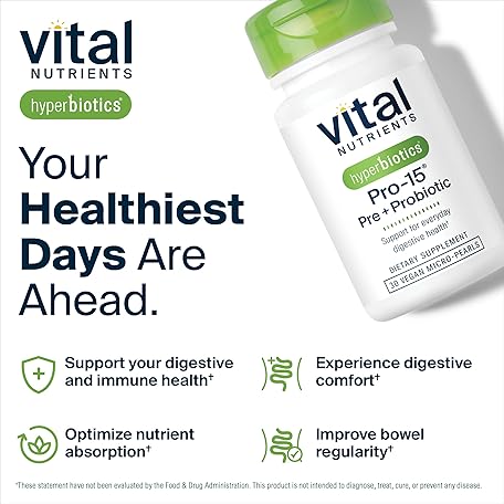 Thông tin sản phẩm Hyperbiotics Vital Nutrients Pro-15 Prebiotics and Probiotics for Women and Men | 15 Science Backed Strains | Supports Occasional Constipation, Diarrhea, Gas & Bloating | 30 Vegan Time Release Pearls