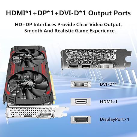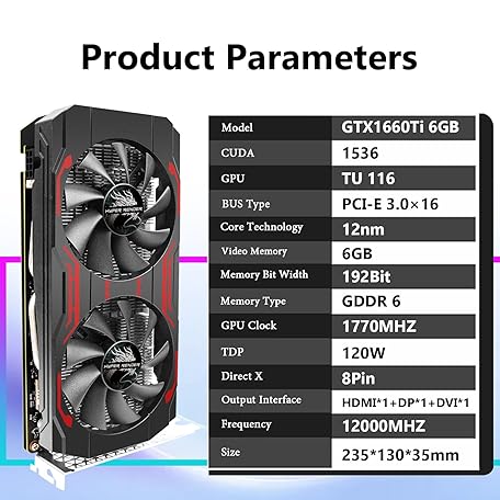 Thông tin sản phẩm HyperRender GTX 1660 TI 6GB Graphics Card, GDRR6,192-Bit,PCIE 3.0X16 Computer Graphics Card for Gaming PC,Twin Freeze Fans Video Card with HDMI/DP/DVI Ports for Gaming GPU