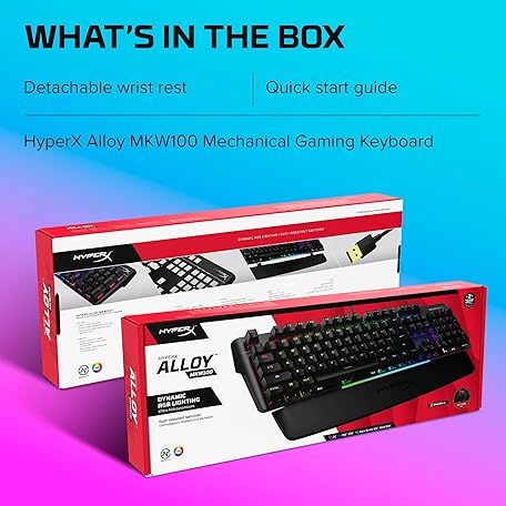 Thông tin sản phẩm HyperX Alloy MKW100 – Mechanical Gaming Keyboard, Dynamic RGB Lighting, Onboard Memory to Save Lighting Profiles, Dust-Proof Mechanical switches, Brushed Aluminum Frame, Detachable Wrist Rest