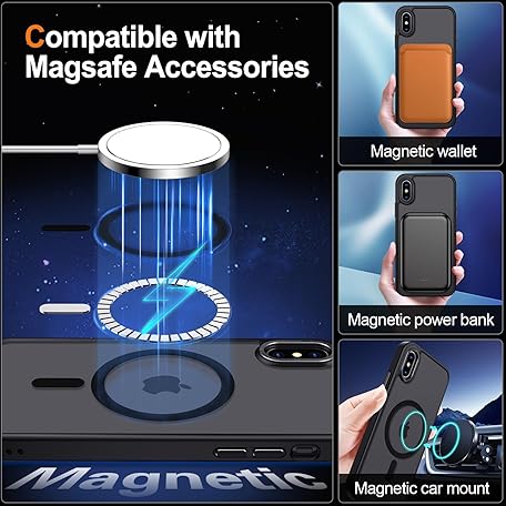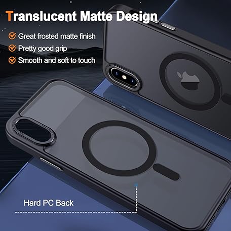 Hython Case for iPhone Xs Max Case Magnetic Translucent Matte Phone Cases 6.5" [Compatible with MagSafe] Thin Slim Fit Shockproof Bumper Hard Protective Cover for Women Men Girls, Frosted Black