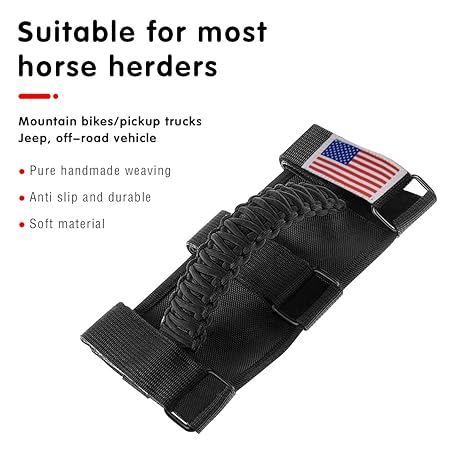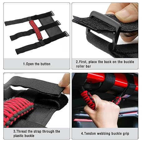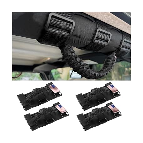 HZEL 4PCS Roll Bar Grab Handles, Oxford Cloth Upgrade Metal Buckle Paracord Grip Handles, Durable and Strong Car Accessories, Compatible with Wrangler JL, JLU, JT, JK, JKU, TJ, LJ and YJ (Black)