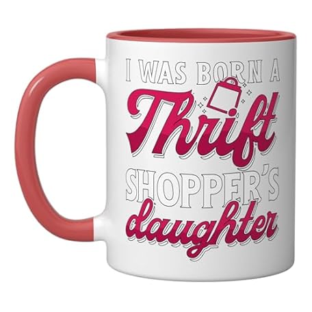 I Was Born A Thrift Shopper's Garage Sales Thrift Shopping Ceramic Mug, Red/White