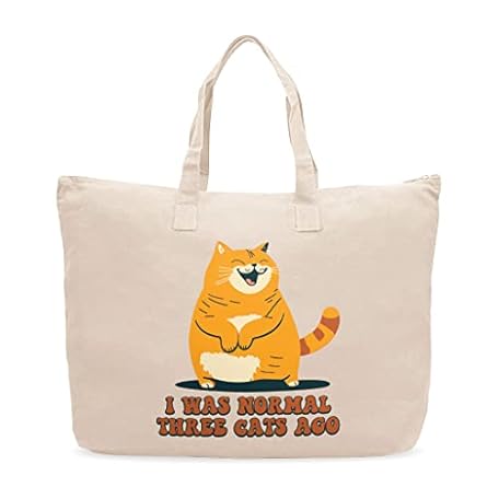 I Was Normal 3 Cats Ago Cotton Canvas Bag - Funny Design Shopping Bag - Trendy Tote Bag