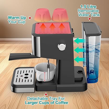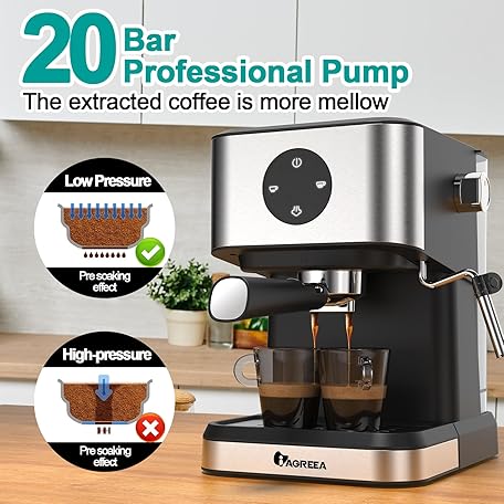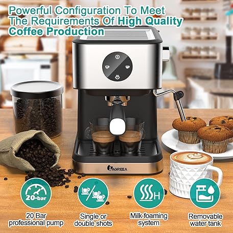 Thông tin sản phẩm IAGREEA Espresso Machine 20 Bar, Espresso Maker with Milk Frother Steam, Coffee Maker with 50 Oz Water Tank, Cappuccino and Latte Machine for Home, Stainless Steel, Cup Warmer, Gift for Mom, Dad