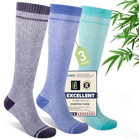 • Iambamboo Compression Socks Women & Men, 15-20 mmHg Bamboo Viscose Knee High Soft Support for Flying Travel Daily