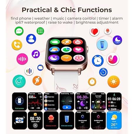 Thông tin sản phẩm Iaret Smart Watch for Women, 1.83" HD Fitness Tracker with 4 Bands, Answer/Make Calls, Heart Rate/Sleep/SpO2/Step Tracking, 100+ Sport Modes, Android/iPhone Compatible Gift (Rose Gold)