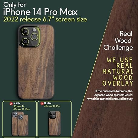 iATO iPhone 14 Pro Max Case: Premium Natural Wood Cover, Military-Grade Protection, Ultra-Slim, MagSafe Compatible, Eco-Friendly - Walnut [Last Batch/Limited Edition]