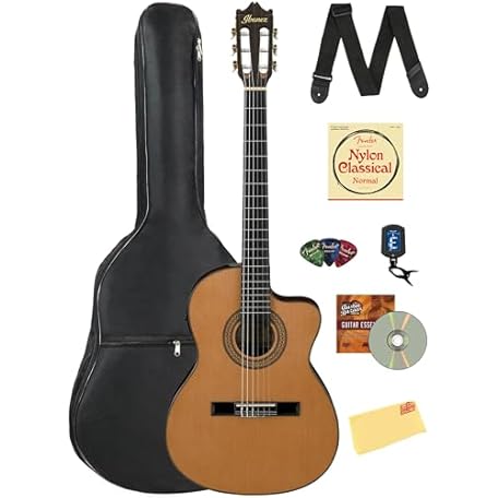 Ibanez GA5TCE Classical Acoustic-Electric Guitar - Amber High Gloss Bundle with Gig Bag, Tuner, Strap, Strings, Picks, Austin Bazaar Instructional DVD, and Polishing Cloth