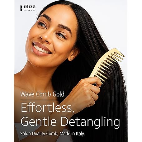 Thông tin sản phẩm Ibiza Hair Professional Wave Detangling Comb (Gold), Wide Spaced Teeth Preserve Curl & Definition, Pain Free Hair Accessories for Women & Girls, Durable & Heat Resistant for Everyday Use