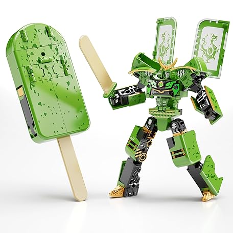Ice Cream Transforming Toy, 2 in 1 Popsicle Transform into Robot Action Figure, DIY Transformation Figure Toys for Kids & Adults Action Figures for Boys Party Favors Gift (Green)