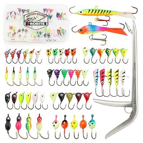 Ice Fishing Kit 56PCS – Durable Ice Fishing Lures with Sharp Jig & Lifelike Vibrating jigs – High Value Ice Fishing Gear for Bass Trout Walleye Perch Panfish