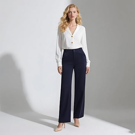 iChosy Womens High Waist Wide Straight Leg Trousers Casual Slacks Dress Pants with Pockets