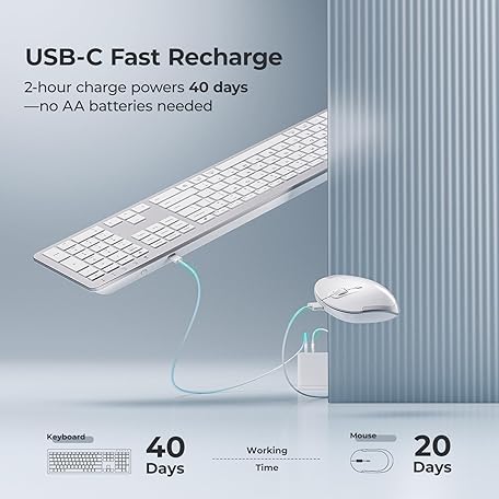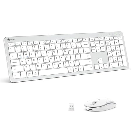 Thông tin sản phẩm iClever Wireless Keyboard and Mouse, GK08 White Keyboard Mouse Combo, Ergonomic, Quiet, Full Size Design with Number Pad, 2.4G Connection for Mac, Windows and Computer