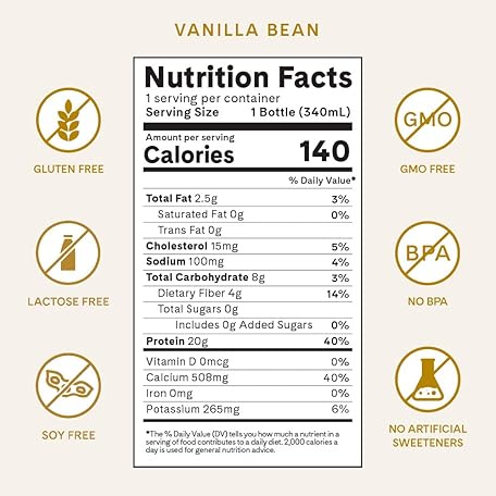 Thông tin sản phẩm Iconic Protein Drinks, Vanilla Bean (12 Pack) - Sugar Free & Low Carb - 20g Grass Fed Protein - Lactose Free, Gluten Free, Non-GMO, Kosher - Keto Friendly Protein Shakes