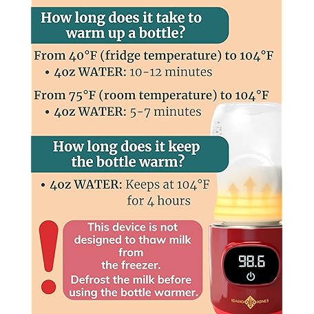 Thông tin sản phẩm IDAHO JONES Portable Bottle Warmer - On The Go & for Travel - Baby Bottle, Breastmilk & Formula - Battery Powered & Operated, Cordless - Fits Dr Brown, Comotomo & Others